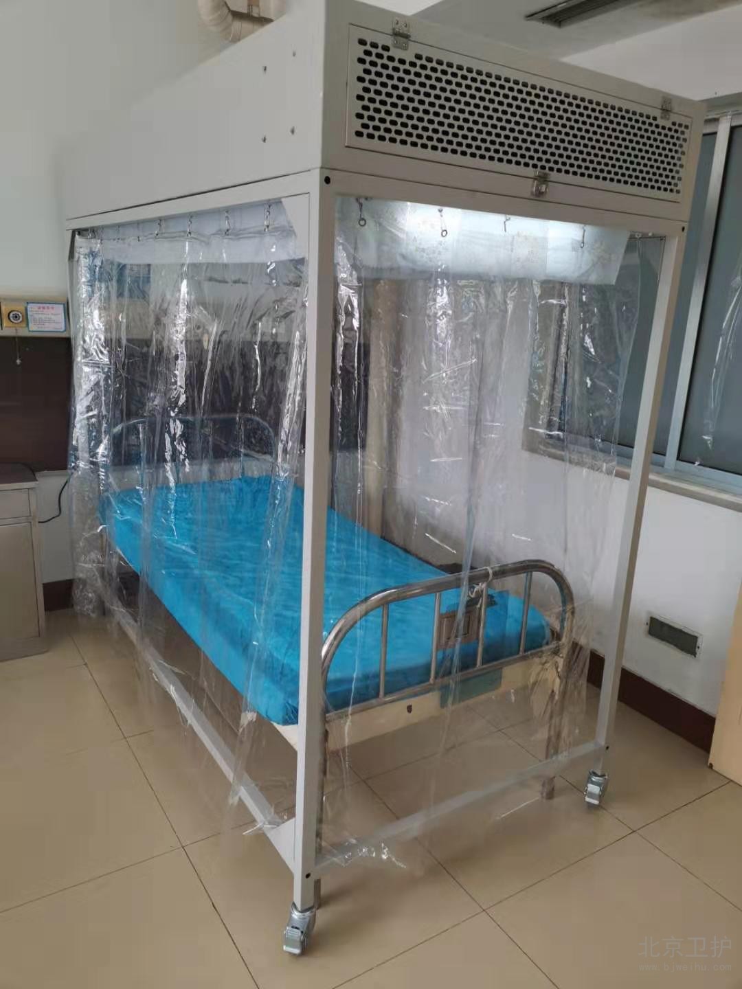 層流消毒床罩運用垂直層流的潔凈送風形式,使罩內(nèi)空氣潔凈度達到百級的潔凈環(huán)境,同時罩內(nèi)區(qū)域維持微正壓,阻止外部污染空氣進入罩內(nèi),起到無菌隔離的作用。