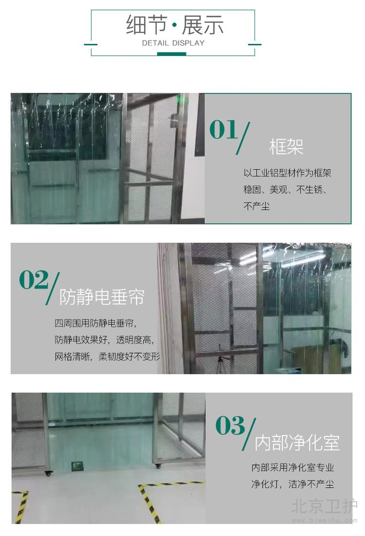 潔凈工作棚(簡稱:潔凈棚)(CLEAN BOOTH)是為快速方便建立的一座簡易潔凈室,潔凈棚具備多種潔凈等級(jí)及空間搭配可以根據(jù)使用需求設(shè)計(jì)制作,因此其簡便運(yùn)用彈性大安裝容易且施工期短以及可移性為其主要特點(diǎn),潔凈工作棚同時(shí)可針對(duì)在一般等級(jí)的潔凈室中局部地區(qū)需要高潔凈度的地方做局部增設(shè)以降低成本。潔凈工作棚是一種可提供局部高潔凈環(huán)境的空氣凈化設(shè)備。潔凈棚主要由箱體、風(fēng)機(jī)、初效空氣過濾器、阻尼層、燈具等組成,外殼噴塑。該產(chǎn)品既可懸掛,又可地面支撐,結(jié)構(gòu)緊湊,使用方便??梢詥蝹€(gè)使用,也可多個(gè)連接組成帶狀潔凈區(qū)域。