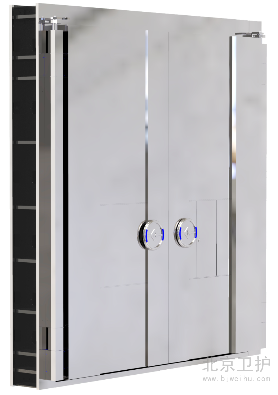 1. 雙手輪鎖栓機(jī)構(gòu):文物庫房門正面及背面都安裝有開關(guān)門的手輪,日常使用時(shí),庫房管理人員進(jìn)入庫房后在庫房?jī)?nèi)可以關(guān)閉庫房門,大大提高了庫房管理人員進(jìn)入庫房后人員及文物的安全。