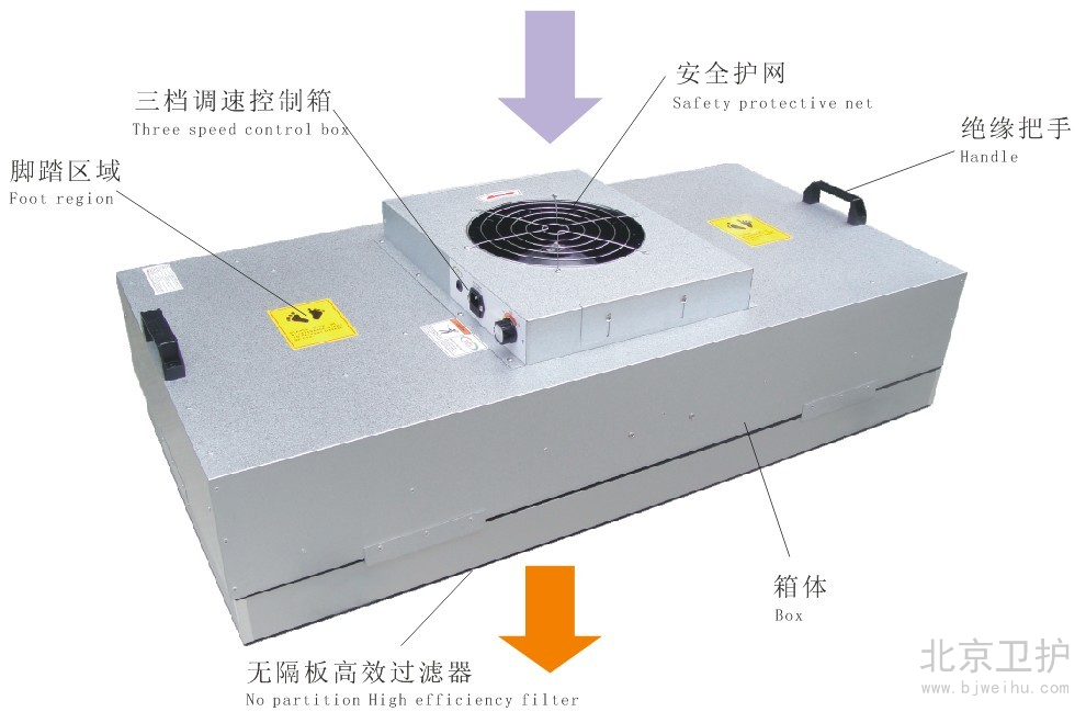 風機過濾單元是一種內(nèi)配風機的吊頂用機組,用于亂流及層流潔凈室內(nèi),該機組設計整體靈活,根據(jù)設計的規(guī)格,它可以輕易地配合任何吊頂骨架,以達到潔凈等級1000級至1級要求。風機過濾單元是潔凈市場上其中一種最安靜、價格優(yōu)良的機組。采用這種機組,可以為潔凈室輸送高質(zhì)量空氣。而且空氣流形好,它適用于半導體,電子、平板顯示器和磁盤驅(qū)動器的廠家及光學、生物工業(yè)等行業(yè)應用于潔凈室、潔凈工作臺、潔凈生產(chǎn)線、組裝式潔凈室和局部百級等場合及其它對空氣中污染有嚴格控制要求的地方低耗能,降低運行成本。